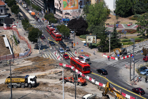 Saobraćajni čepovi stvaraju se i centralnim gradskim ulicama, pa tako su primetni zastoji na Trgu Nikole Pašića, ali i u Takovskoj ulici.