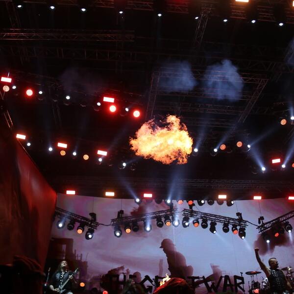 Na stage-u se odigrava totalni performans, dok izvode jednu od svojih najpoznatijih numera "Great war", sa svih strana izlazi vatra. Tematiku pesme su u potpunosti ukopili sa svenografijom, vodili su računa o svakom detalju.