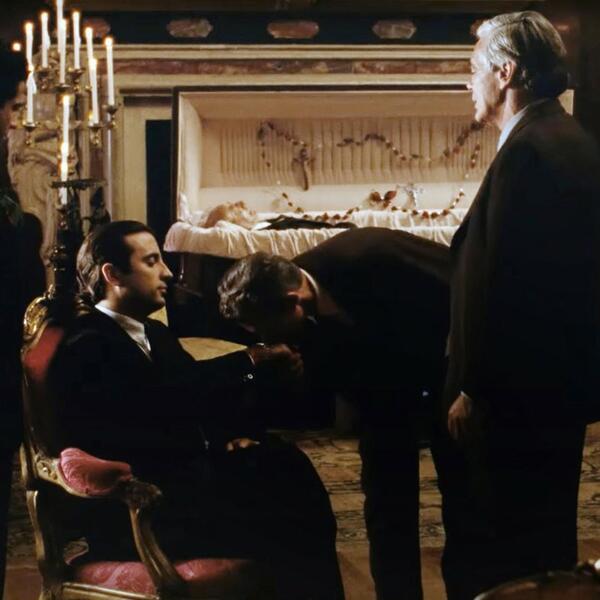Čak i svetlo koje se probija kroz venecijanere u Majklovom ofisu izgleda isto kao u prvom filmu kada Marlon Brando kao Vito Korleone prima posetioce.