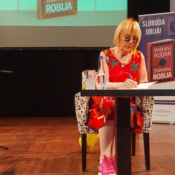 Može se primetiti da je Vedrana Rudan je na promociju knjige došla u kežual izdanju, koje joj savršeno stoji.