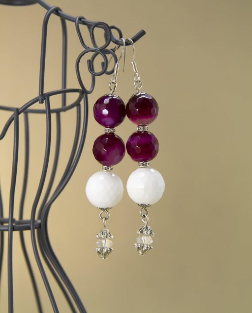 Elegant Purple su izuzetno lepe i elegantne minđuše srednjeg formata, sačinjene od purpurnog ahata i belog korala, oplemenjenih Swarovski kristalima. Purpurni ahat je dragulj emotivne, fizičke i intelektualne ravnoteže. Ukupna dužina minđuše je 8,2 cm. OVDE ih možete poručiti, po ceni od 1990 rsd , ili pozivom na broj telefona 011/4420-502 radnim danima.