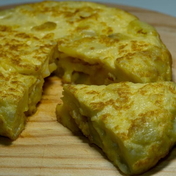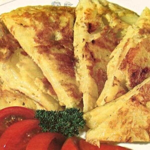 3. Lopaticom prođite pored ivica i lagano izvucite omlet na ploču. Servirajte odmah, uz tortilju u španskom stilu, ohladite do sobne temperature. Prelijte maslinovim uljem preko vrha i isecite i na kriške.