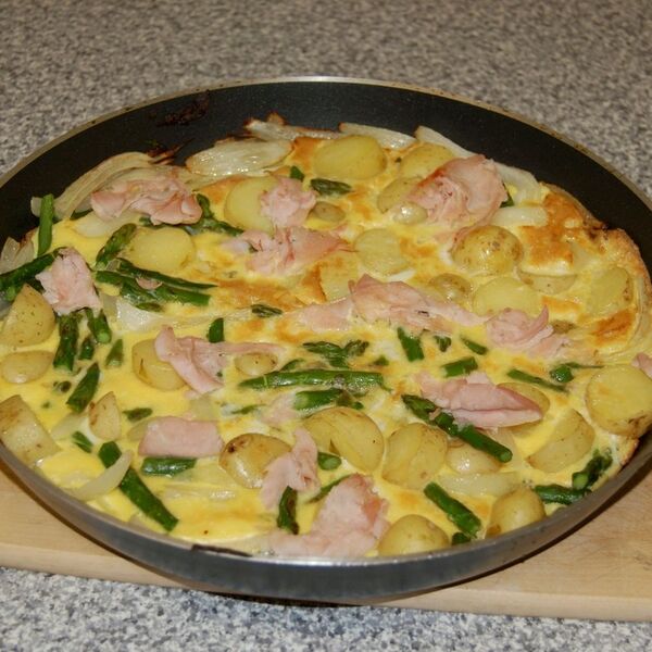 2. U velikoj posudi, umutite jaja sa preostalom solju i biberom i umešajte peršun. Prelijte preko krompira smešu. Lagano kombinujte povrće i jaja. Kuvajte na umerenoj temperaturi oko 4 minuta, dok se jaja ne učvrste oko ivica. Pecite sve oko 6 minuta.