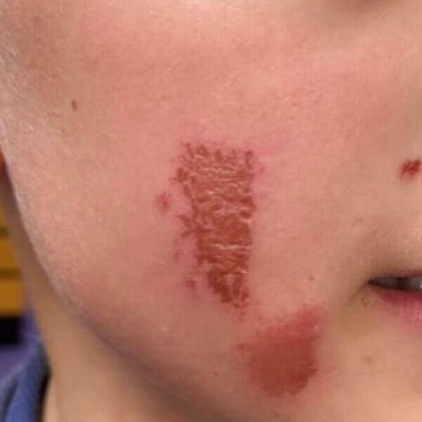 "Od tada smo počeli da lečimo tu opekotinu, koja se zati ubrzo dva dana nakon toga pojavila i na obrazu, u dva oblika."