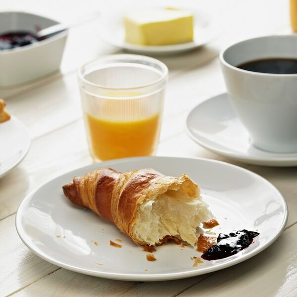 Kafa s mlekom i slatko pecivo čest su izbor ako prvi jutarnji obrok jedete s nogu van kuće. Reč je o finoj kombinaciji za oči i stomak, kojoj, nažalost, nedostaje proteina. Istraživanja su pokazala da doručak baziran na proteinima uravnotežuje količine šećera u krvi i smanjuje nagle napade gladi. Započnite dan sa dva tvrdo kuvana jaja i jabukom.