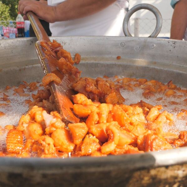 U posebnoj šerpi zagrejte ostatak ulja i ispržite preostalu iseckanu glavicu crnog luka.