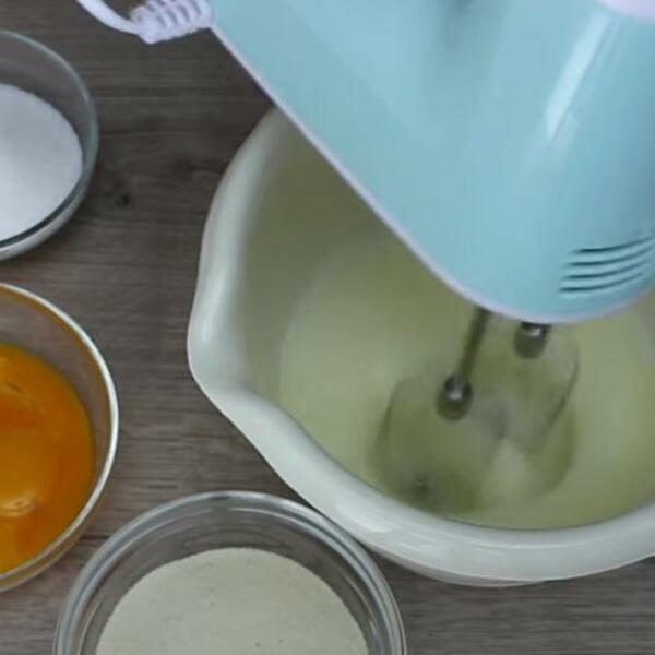 Odvojite belanca od žumanaca, pa belanca umutite mikserom u čvrst sneg. Potom dodajte šećer, pa nastavite da mutite dok se belanca i šećer ne sjedine.