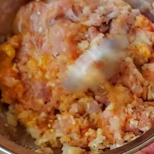Skuvati testeninu, ocediti, pa dodati 2 kašike maslinovog ulja. Meso izmešati sa nabrojanim sastojcima, formirati male ćuftice, pa uvaljati u prezle i pržiti u ulju.