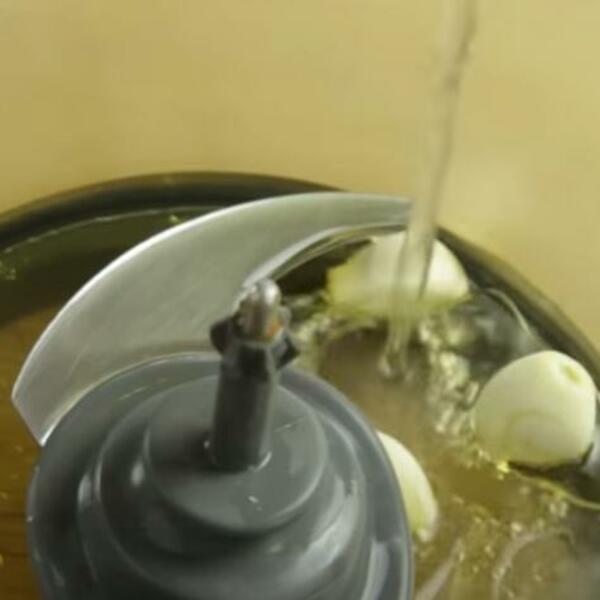 Napravite pastu od belog luka i badema. Dok se krompir hladi, pomešajte bademe, beli luk, veliki prstohvat soli i limunov sok u maloj posudi procesora hrane sa sečivom. Pokrenite procesor dok se beli luk i bademi ne pretvore u pastu.