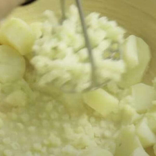 Pripremite i kuvajte krompir. Stavite krompir naseckan na kockice u veliko cedilo i isperite hladnom vodom dok voda ne bude bistra. Prebacite u šerpu i dodajte vodu da prekrije krompir. Dobro posolite vodu. Pustite da provri na jakoj vatri, a zatim smanjite vatru na srednje-nisku i kuvajte oko 10 do 15 minuta ili dok se krompir dobro ne skuva. Krompir ocedite u istu cediljku i ponovo isperite, ovoga puta vrelom vodom, 30 sekundi. Krompir ostavite na stranu 5 do 7 minuta kako bi višak vlage ispario.