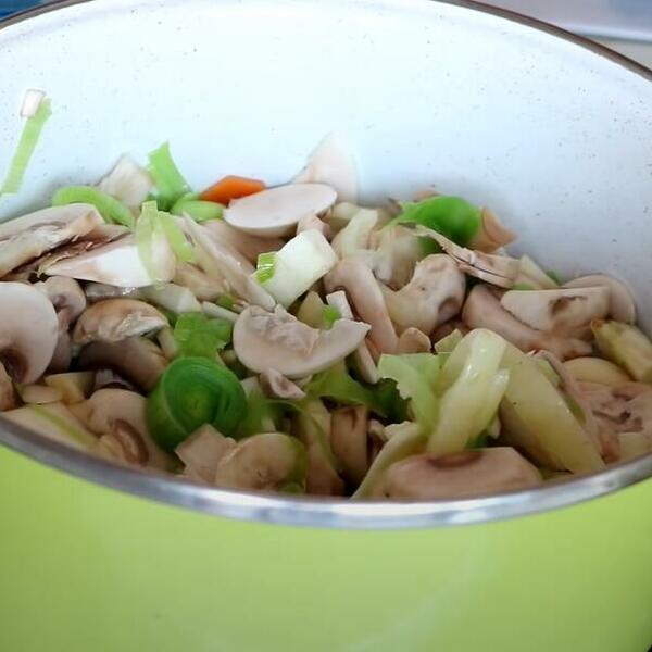 - Sipajte pavlaku i bujon od povrća i ostavite čorbu od pečuraka da vri još 4-5 minuta.