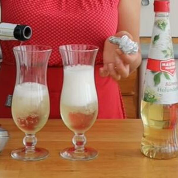 Iseckati i izgnječiti listiće nane, i staviti ih na dno visoke čaše za vino. Dodati sirup od zove, sok od limete, penušavo vino i mineralnu vodu. Promešati dobro i dodati prema želji listiće nane, iseckanu limetu i led.