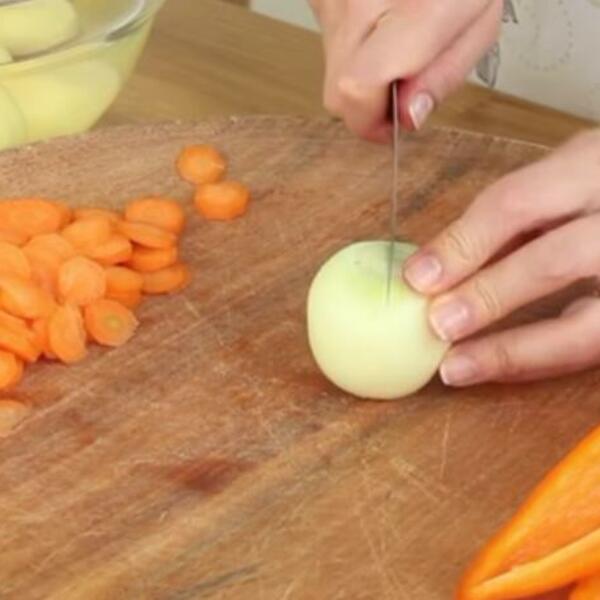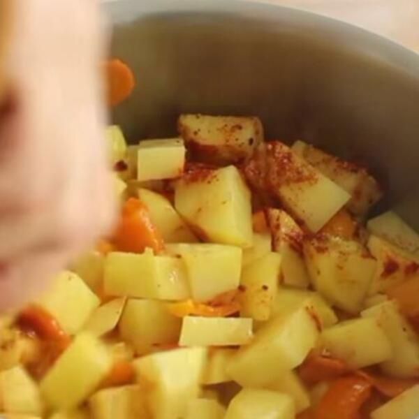Oljuštite krompir, pa ga iseckajte na kockice. U šerpu stavite mast (ili ulje, ukoliko postite), krompir kratko propržite (tek da zamiriše), pa dodajte začinsku papriku, vodu, so, biber i kuvajte otprilike 20 minuta. Ukoliko volite bogatiji ukus povrća, možete da dodate jednu isečenu crvenu papriku ili dve šargarepe.