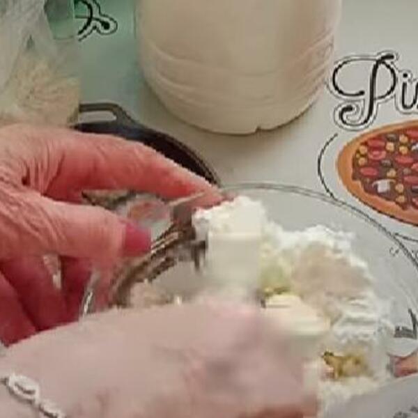 Umutiti prvo belanca kao za tortu, dodati kukuruzno brašno sa praškom za pecivo, žumanca, ulje, sir jogurt i sve polako dobro izjednačiti.