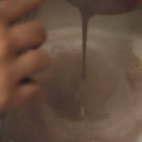 Skloniti sa vatre i dodati margarin pa mešati dok se skroz ne sjedine. U početku izgleda vodeno ali se lagano spajaju.