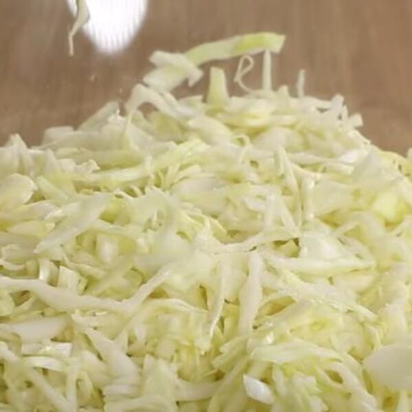 Naseckajte kupus što tanje (ili ga narendajte), pa ga ovlaš posolite i lagano izgnječite rukom.