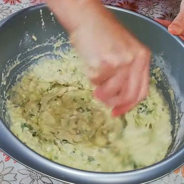 Na ulju prodinstajte praziluk sečen na kolutove, malo kasnije dodajte tikvice sečene na kocke, posolite i još malo prodinstajte. Sklonite sa ringle da se malo prohlade.