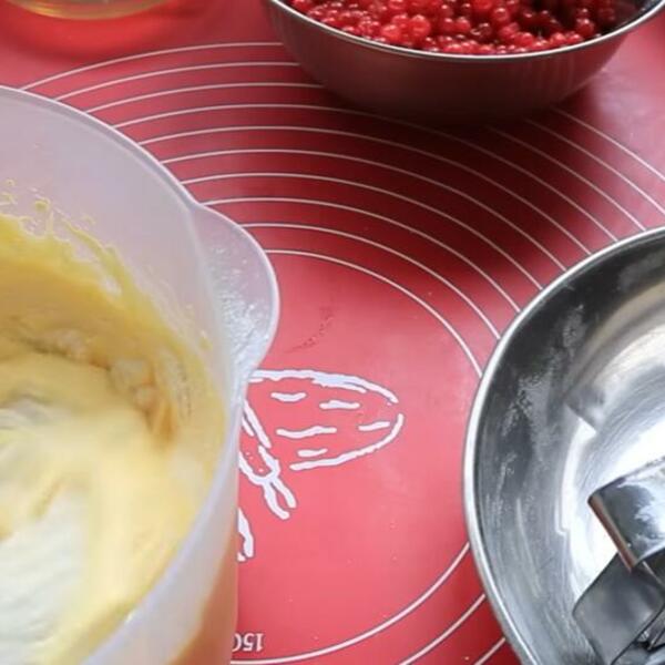 Belanca umutite u sneg, pa dodajte šećer i žumanca i sve promešajte varjačom. Zatim dodajte brašno i ulje, pa sve ponovo promešajte.