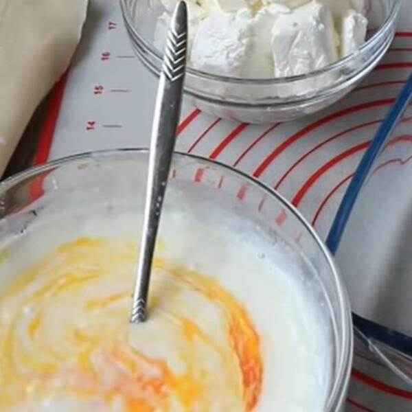 Umutite jaja (2 komada), pa dodajte mrvljeni sir, kiselu vodu, jogurt. Svaku koru zgužvajte, potopite u fil i onda ređajte u podmazan pleh. Nemojte da stavljate koru na dno, nego odmah ređajte izgužvane kore, jer će se pojedini komadići sira fino zapeći i korica će biti fino hrskava.