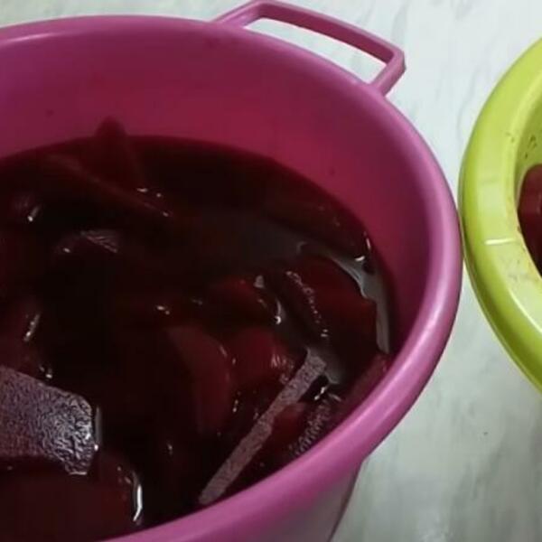 Cveklu dobro operite, ali nemojte da je ljuštite. Stavite da se kuva u komadu, u dubljoj šerpi oko sat i po vremena. Znaćete da je gotova kada možete lagano da je probodete nožem. Dok se cvekla kuva, u posebnj šerpi prokuvajte vodu, sirče, šećer i so.
