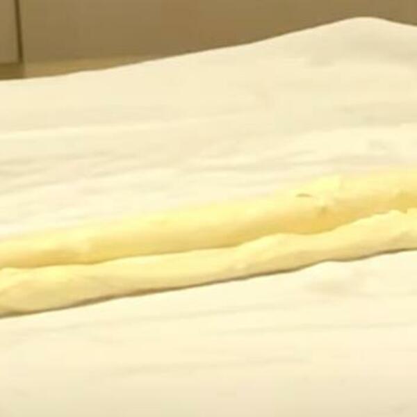 Uviti u rolat i iseći na parčiće pre pečenja. Nakon što se kore uviju pita treba da odstoji 20 minuta pre nego što se stavi u rernu.