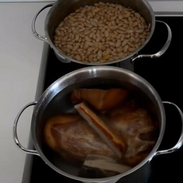 Priprema: Pasulj potopite u vodu i ostavite par sati, a najbolje je preko noći. Zatim prospite vodu, sipajte novu i kuvajte dok ne proključa. Opet prospite vodu, pa dodajte u pasulj ječam i suvo meso i opet sipajte vodu da ogrezne. Poklopite i kuvajte na laganoj vatri oko sat vremena.