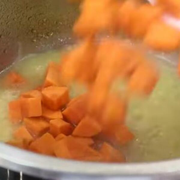 Ubacite naseckanu šargarepu i grašak. Nakon toga oljuštite kromir, iseckajte ga na kockice i dodajte u čorbu zajedno sa mirođijom i vegetom.