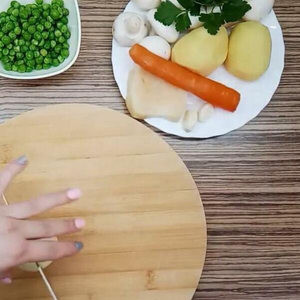 U šerpu stavite iseckani luk (1 komad), šargarepu (1 komad), celer i meso isečeno na sitno. Sipajte nekih 1,5 vode i stavite biber u zrnu kao i lovorov list. Kuvajte 40 minuta na laganoj vatri. U tiganju ispržite šargarepu koju ste izrendali (3 komada), pa dodajte secakni crni luk (1 komad), papriku i beli luk, pa posolite.