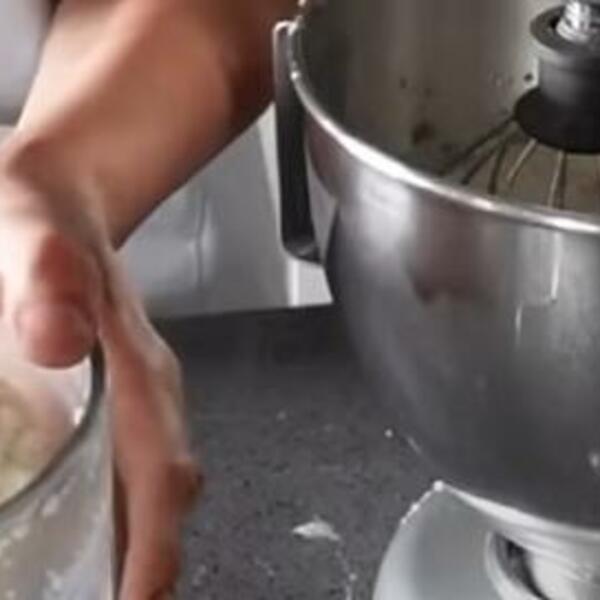 Pomešajte brašno, griz, orahe i cimet. U drugoj posudi umutite jaja sa šećerom. Dodajte ulje, sjedinite, pa mleko i ponovo umutite.
