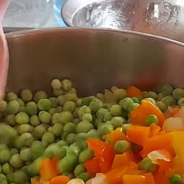 Nakon toga dodajte grašak, seckan čen belog luka, malo paradajz soka i nalijte vodom. Začinite i dodajte pola kašičice šećera. Kuvajte dok grašak ne omekša. Pred kraj napravite zapršku sa brašnom i mlevenom paprikom.