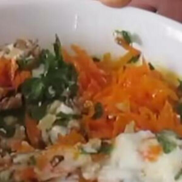 Šargarepu izrendajte, pa prodinstajte na maslinovom ulju. Pomešajte jogurt, seckane orahe, seckani peršun, majonez i so, pa dodajte i šargarepu. Sve dobro sjedinite i servirajte sa sarmama.