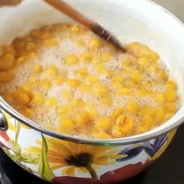 Ugrejte slatko na pari ili u mikrotalasnoj i pustite da se šećer istopi, a zatim ga prebacite u šerpu i dodajte malo tople vode, pa ga stavite da proključa na tihoj vatri, uz neprestano mešanje.