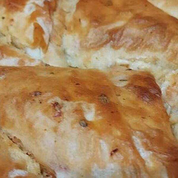 Pomešati jogurt, ulje i jaje. Iseći kore na tri dela po dužini. Uzeti jednu isečenu koru pa premazati sa prelivom od jogurta, ulja i jaja pa preko staviti drugi deo kore i nju premazati, pa na vrh staviti kačkavalj, šunku, kečap, pavlaku i origano pa umotati u trouglić Tako uraditi i sa ostalim korama.