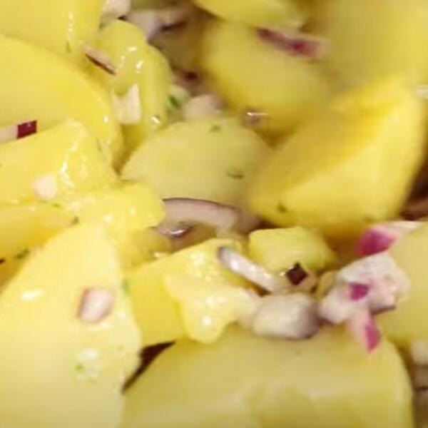 Sve što treba da uradite jeste da operete krompir i obarite ga. Za to vreme iseckajte crni ili crveni i beli luk. Kada je krompir gotov, pomešajte ga sa crnim i belim lukom, pa sve prelijte sirćetom i uljem.