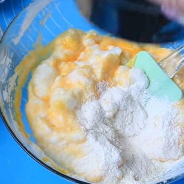 Pomešajte kukuruzno brašno, belo brašno, prašak za pecivo i so, pa dodajte tečne sastojke - jaja, jogurt, ulje, vodu ili kiselu vodu, i sve dobro sjedinite varjačom ili mikserom.
