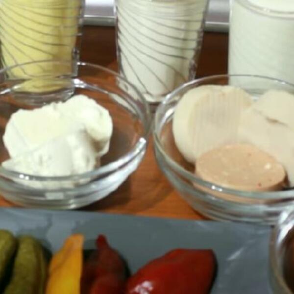 Najpre iseckajte krastavce, papriku i stišnjenu šunku na sitne kockice a trapist sir narendajte.