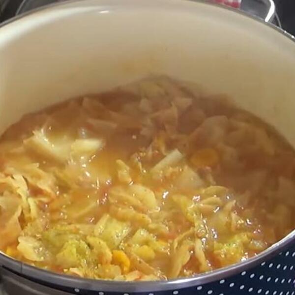 dok kupus ne omekša (probajte sa zgušnjavanjem na listovima), pa dodajte mlevenu papriku, sušeno povrće i mlevena paprika.