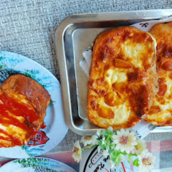 Jaja izmutiti dodati jogurt posoliti malo dodati 3 kašike ulje i sve izjednačiti. Kriške hleba umočiti u pripremljenu smešui sa jedne i druge strane.