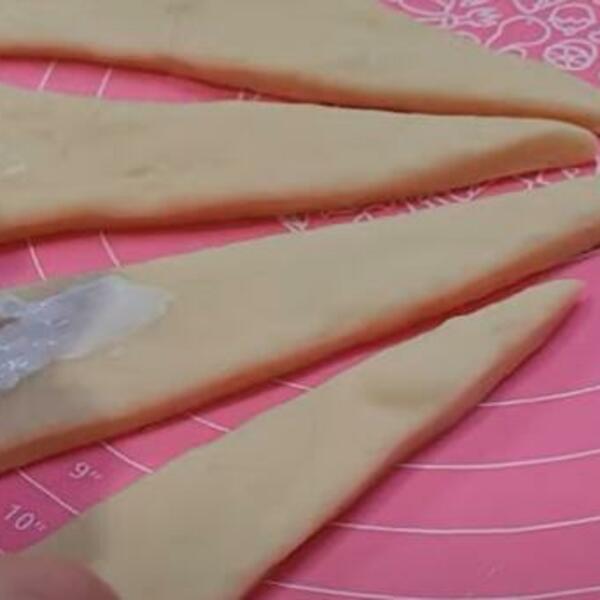 Lakše ćemo rastanjiti testo ukoliko sa jedne strane stavimo malo ulja. Krug podeliti na 16 jednakih trouglova i na svaki staviti kašičicu kisele pavlake. Zarolati kiflice i staviti u pleh sa pek papirom. Premazati sa malo mleka I ostaviti da rastu 15 min. Kada porastu premazati ih razmućenim jajetom I posuti susamo. Peći na 200 °C dok ne porumene.