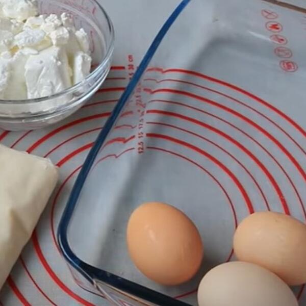 Umutiti jaja i ulje. Dodati kiselu vodu, pecivo i sir.