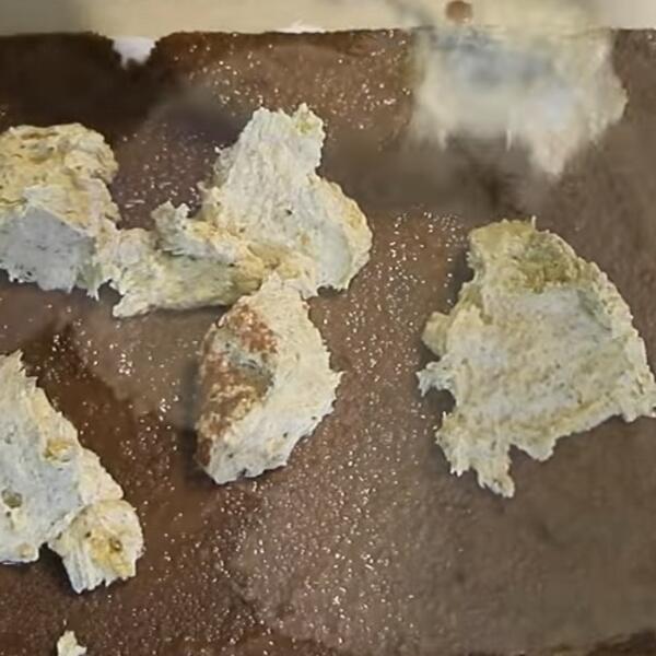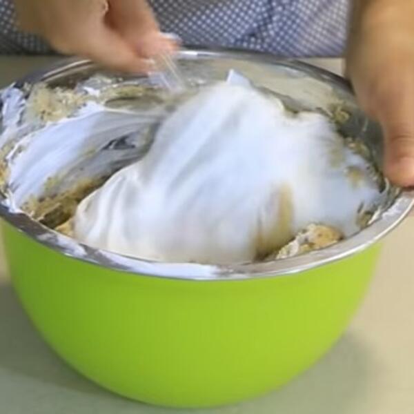 U vanglici pomešati kiselu pavlaku sa šećerom u prahu i polako umešati i sjediniti žicom za mućenje zatim umešati plazma keks i 6 kašika šlaga koji ćete oduzeti od predhodno umućenog.