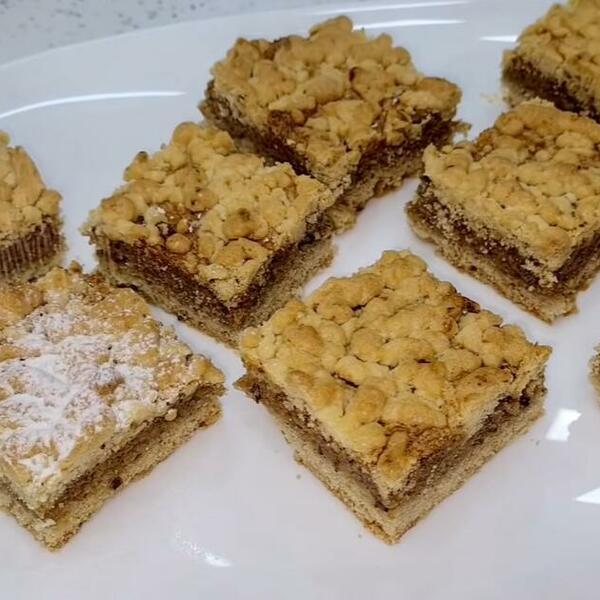 Brašno i mast stavite u dublju posudu i dlanovima trljajte da postane krupičasto. Dodajte šećer, 1 jaje, 1 žumance, mleko i sodu bikarbonu, pa umesite. Stavite ga u frižider na jedno 1/2 sata. Zatim ga podelite na dva dela. Jedan deo razvaljajte na pobrašnjenoj dasci i prebacite u namašćen i pobrašnjen pleh. Zatim stavite nadev od naribanih jabuka, pospite grizom, cimetom i šećerom. Odozgo stavite drugi deo razvaljanog testa. Premažite belancem i pecite na srednjoj temperaturi oko 40 min. Posuti šećerom u prahu i isećći na kocke, piše coolinarika.com.