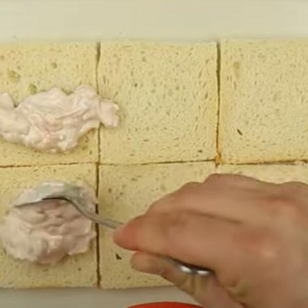Zatim poređamo tost hleb i formiramo drugu koru. Preko stavimo drugi fil.