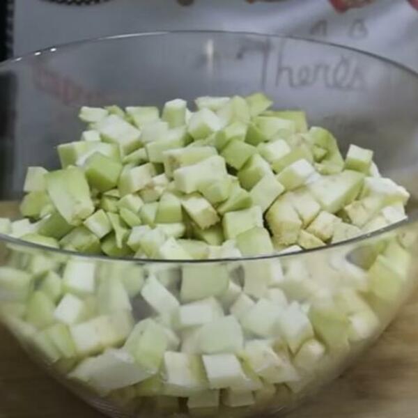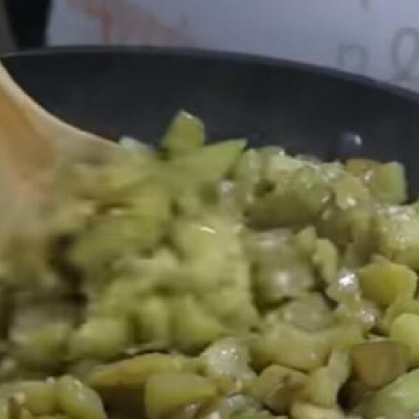 Očistite i na kockice iseckajte patlidžan. Posolite i ostavite sa strane. Paprike iseckajte, kao i ljutu papričicu i sve propržite na ulju. Izvadite u činiju i u paprike dodajte sitno seckan beli luk. U ulju u kojem se pržila paprika ispržite i patlidžan. Ostavite da se prohladi pa onda pomešajte patlidžan, papariku, so i biber, začine, sir i pavlaku. Iseckajte dosta peršuna sve promešajte i poslužite.