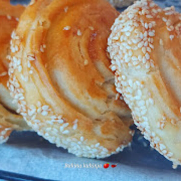 Razviti oklagijom u pravougaonik pa ga uviti u rolata i seći manje rolnice- Razbiti jaje a u manju činiju sipati susam Ivice rolnica provući u jaje pa u susam.