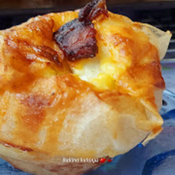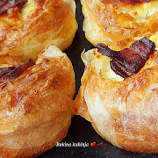 Još malo dodati nadeva pa poklopiti sa ivicama koje vise spolja. Sve ostale tako isto dok ima nadeva. Odozgo staviti mali list suve slanine.