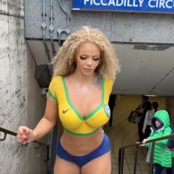 Manekenka Tifani Santos (27) je nedavno izazvala pravu pometnju u Londonu kada se odlučila da prošeta potpuno gola ulicama ovog grada. Fotografije koje su zabeležile ovaj neobičan događaj brzo su obišle svet, prikazujući Tifani kako putuje londonskom podzemnom železnicom, a zatim šeta centrom grada, obučena samo u boje svoje zastave. Strast prema fudbalu i prikazivanje ponosa Tifani Santos, koja je takođe poznata kao influenserka sa impresivnih 233.000 pratilaca, odlučila je da na najneobičniji način pokaže svoju strast prema fudbalu i ponos na svoje brazilsko poreklo. Poreklom iz Sinopa u Brazilu, Tifani je provela četiri sata farbajući svoje telo u boje zastave svoje zemlje - sa malim plavim šortsom i žutim topom sa zelenim obrisima. - Želela sam da odam počast Brazilu i pokažem ponos na svoje korene, naš fudbal nema konkurenciju - rekla je Tifani za NeedToKnow.