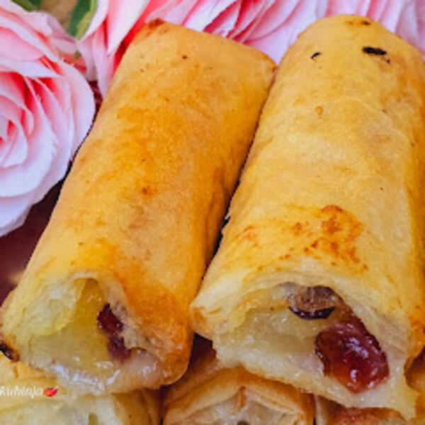 Dinje po želji pošećeriti. Uviti u valjak pa preseći na pola praveći manje rolatiće.