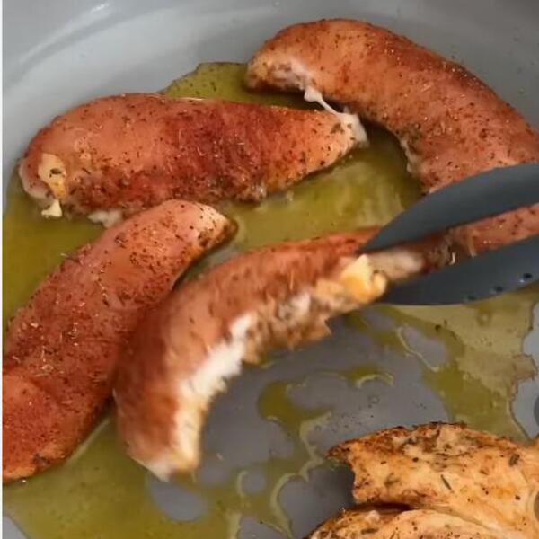- Piletinu uvaljajte u začine: so, biber, ruzmarin, pa je propržite na ugrejanom ulju