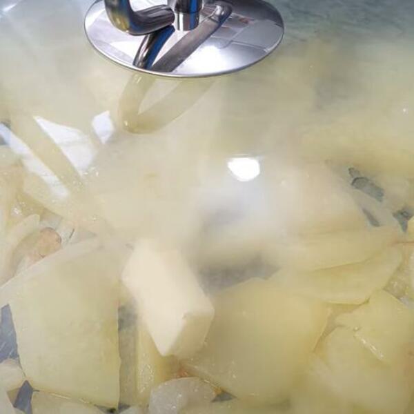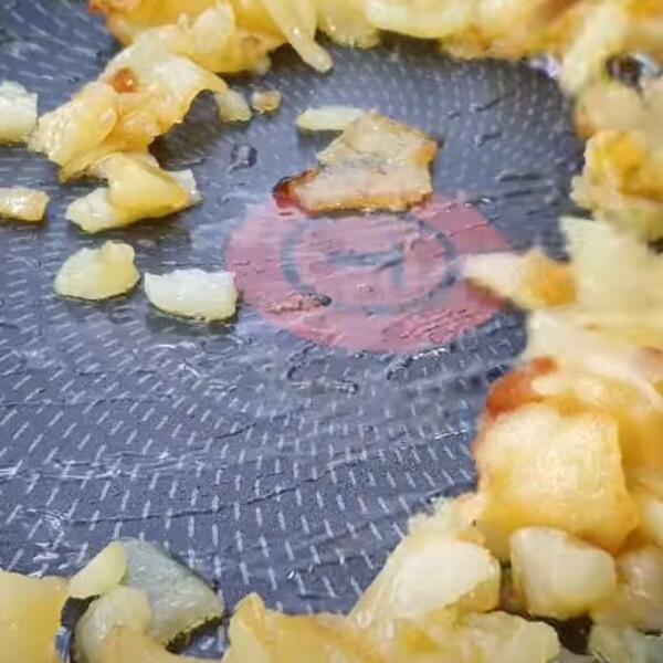 Priprema: Krompir oljuštite i iseckajte na što sitnije deliće. Potom u tiganju na malo ulja prodinstajte luk, dodajte krompir pa poklopite da se dinsta dok krompir omekša. Umutite jaja, posolite ih i pobiberite pa ih prelijte preko krompira.